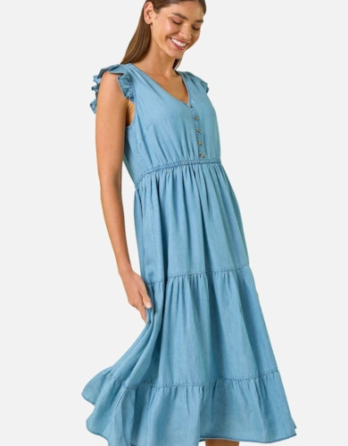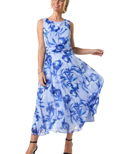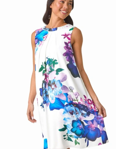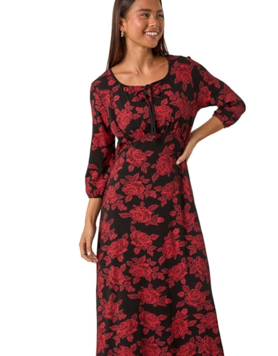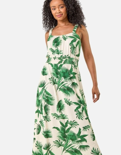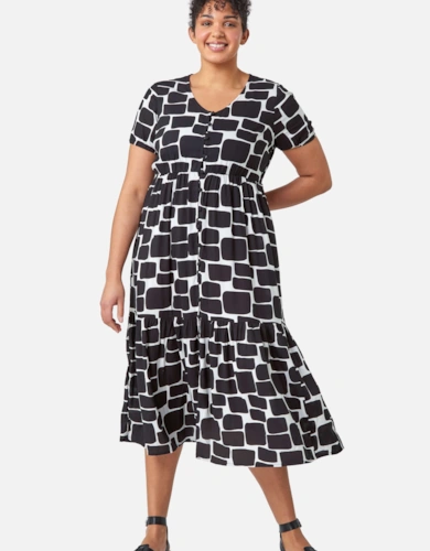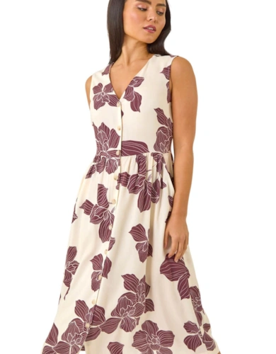 Purple And Cream Animal Print Puff Sleeve Smock Midi Dress