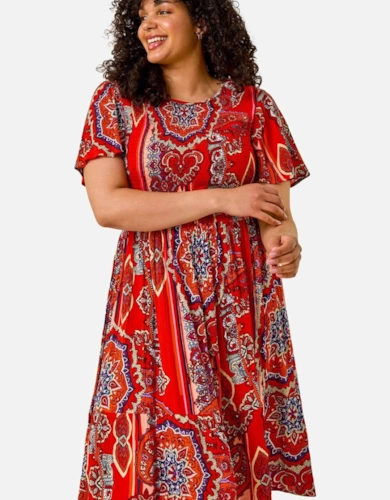 Jacquard Strappy Smock Midi Dress