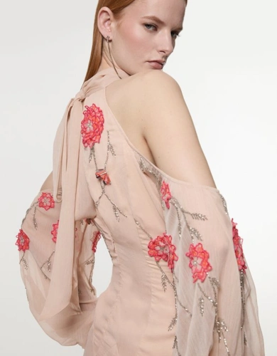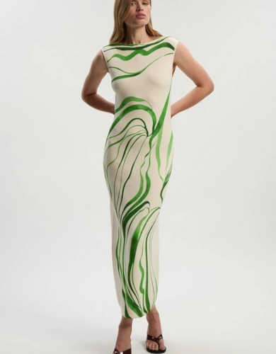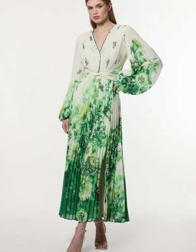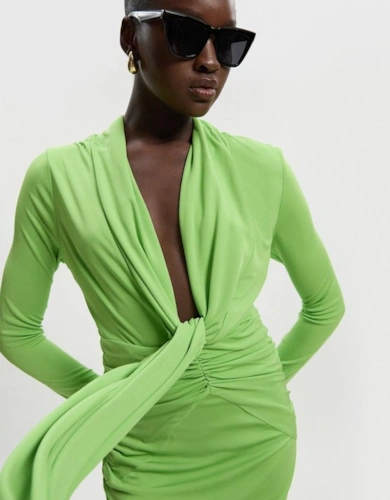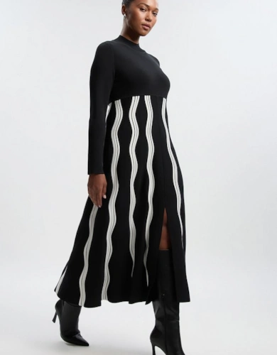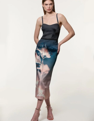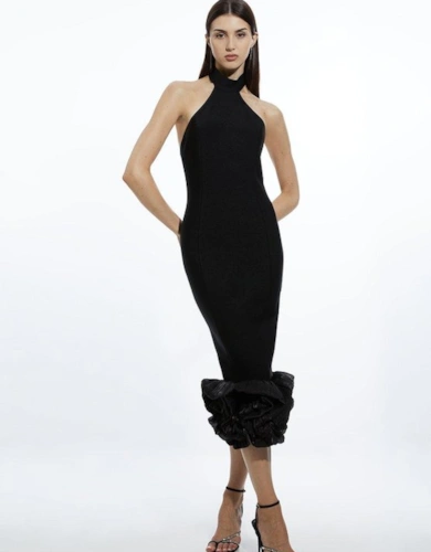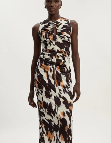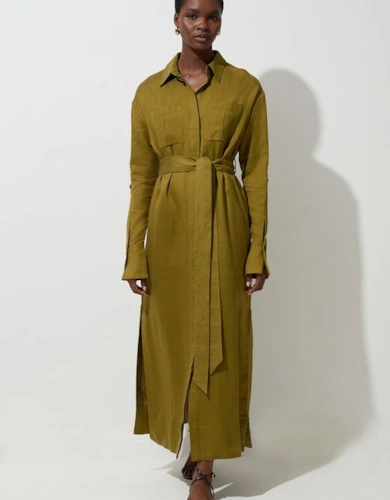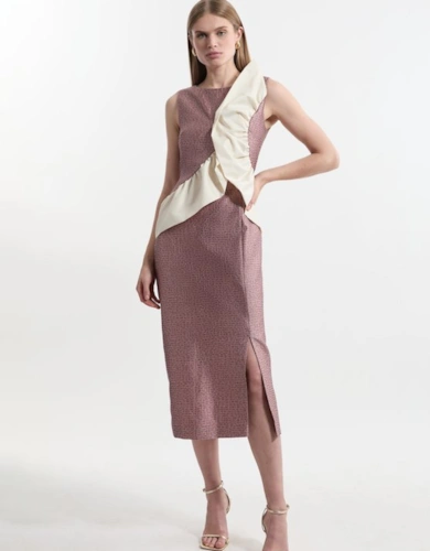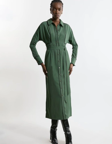 Womens/Ladies Shirred Cuff Short-Sleeved Midi Dress