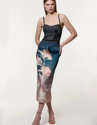 Plus Size Romantic Floral Print Prom Woven Maxi Dress