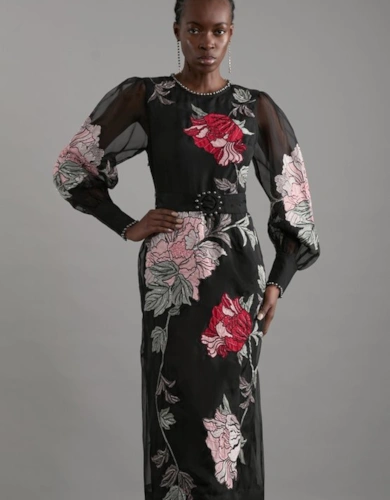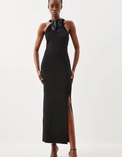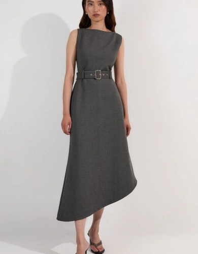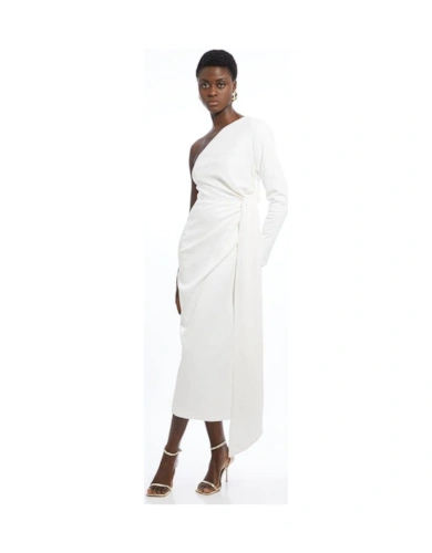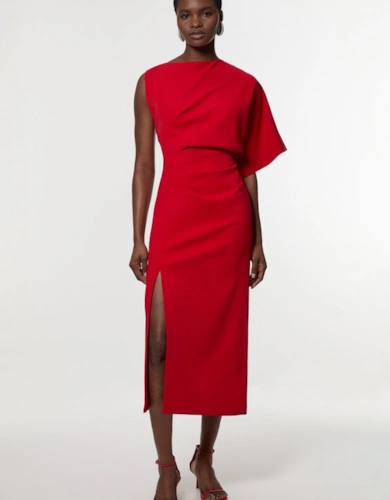 Plus Size Drapey Sheer Rib Knitted Midi Dress