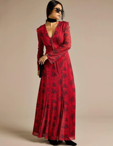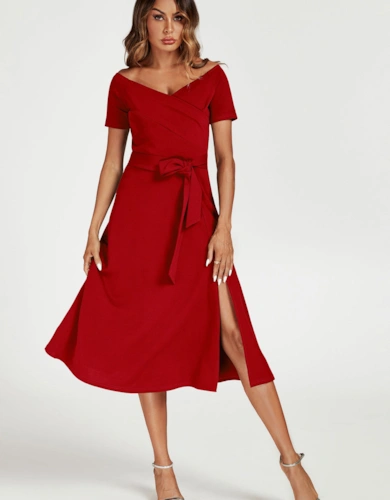 Qiana Ruffle Detail Midi Dress