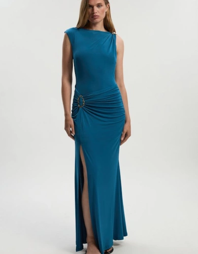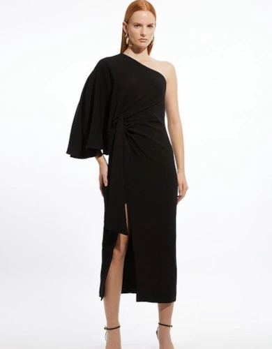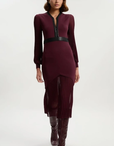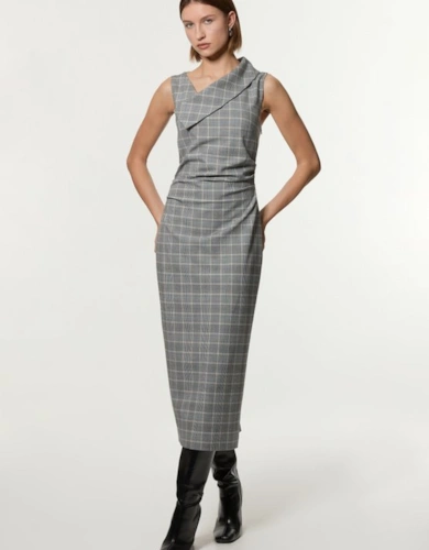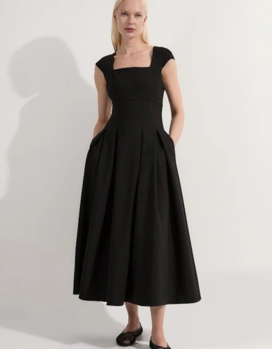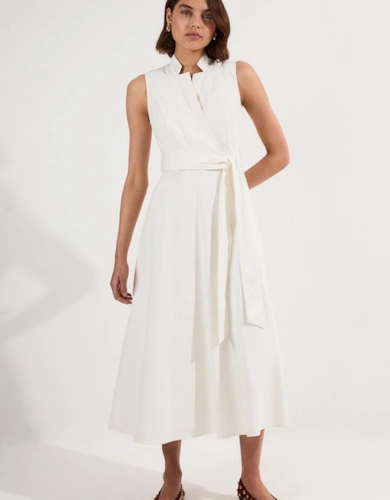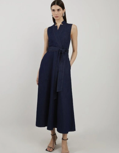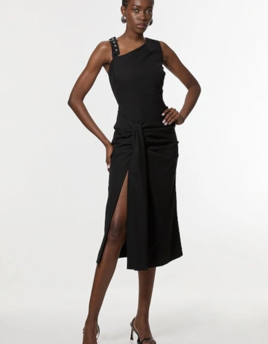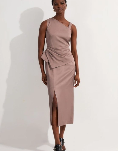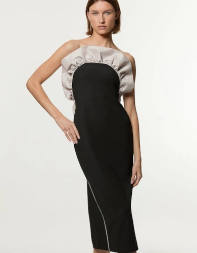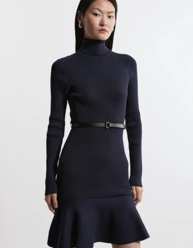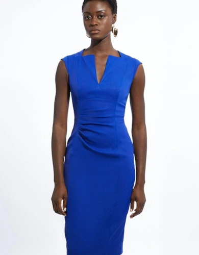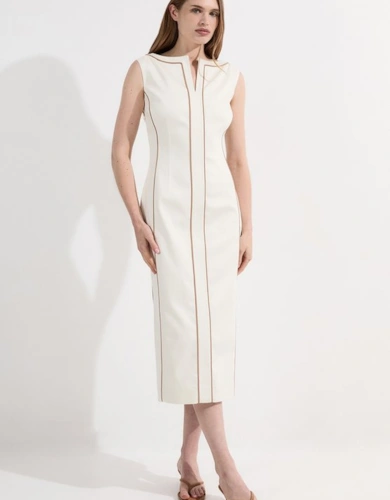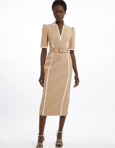 Compact Stretch Contrast Tipped Forever Belted Tailored Midi Dress