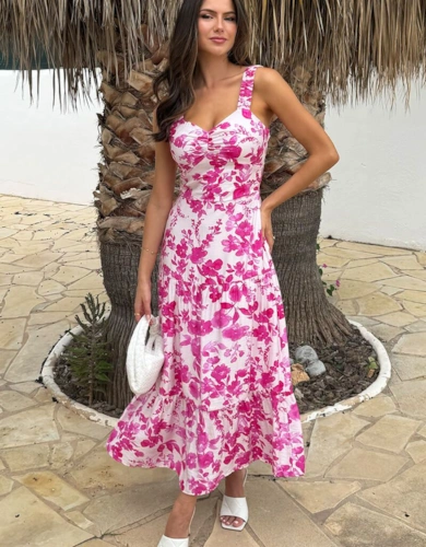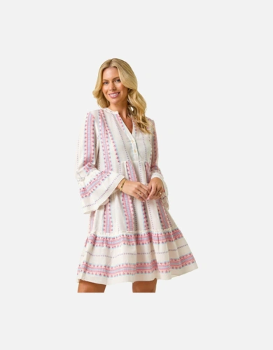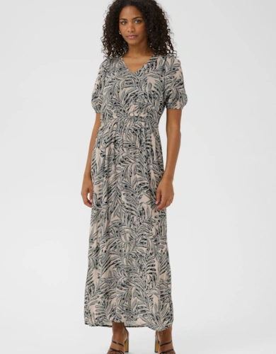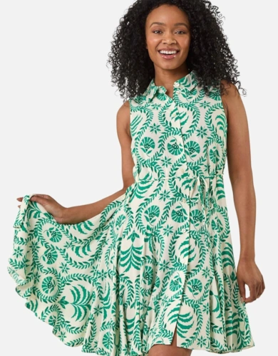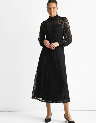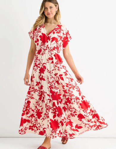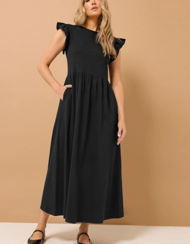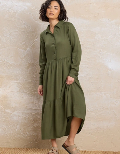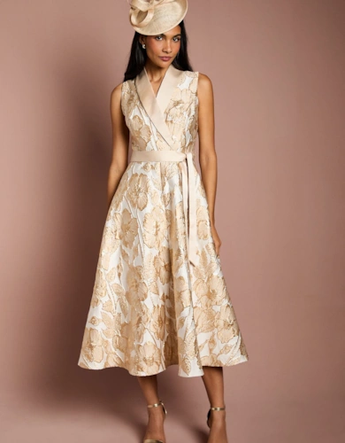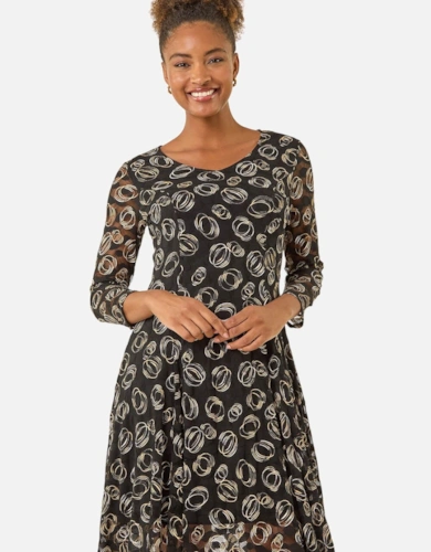 Dobby Chiffon Button Bodice Godet Seam Midi Tea Dress