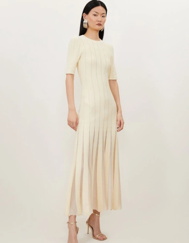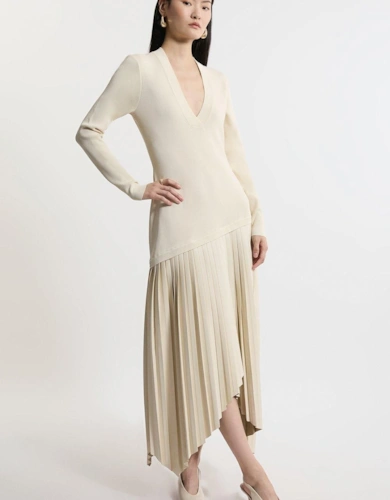 Ponte And Georgette Jersey Pleated Maxi Dress