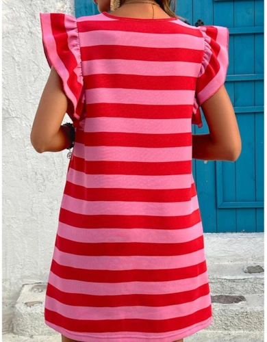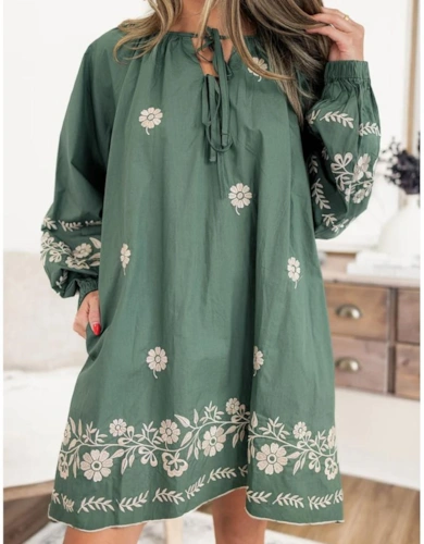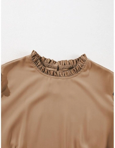 Brown Leopard Color Block V Neck Loose Fit Maxi Dress