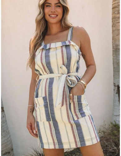 Ashleigh Blue Ruffled V Neck Smocked High Waist Denim Mini Dress