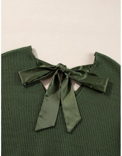 Bright Pink Flag Pattern Inspired Sequin Bow Spiral Ribbed Puff Sleeve T Shirt Dress