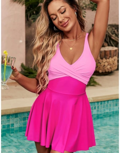 Dark Blue V Neck Twist Ruched Crisscross Backless One-Piece Swimsuit