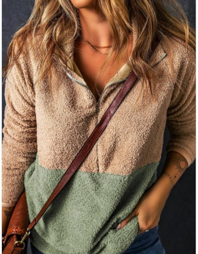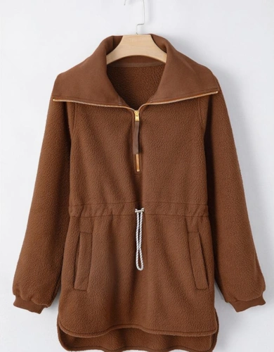 Light Grey Fleece Lined Half Zipper Kangaroo Pockets Loose Hoodie