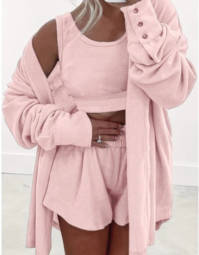 Bonbon Delicate Texture Cropped Cami Shorts And Cardigan 3Pcs Lounge Set
