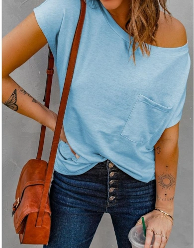Aruba Blue Corded Texture Plaid Colorblock Patchwork Split Neck Long Sleeve Top