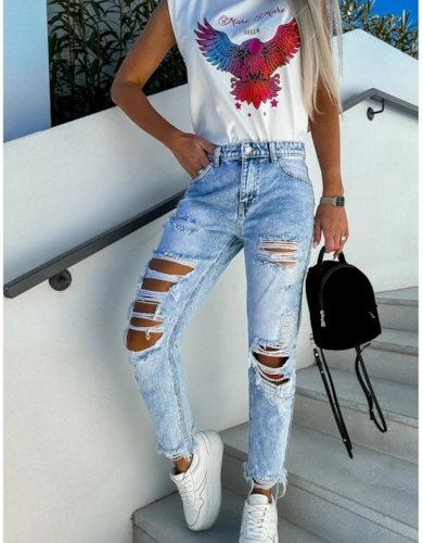 Blue Boho Pattern Print High Waist Wide Leg Loose Pants