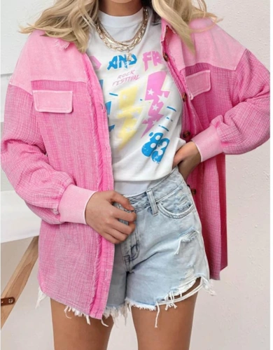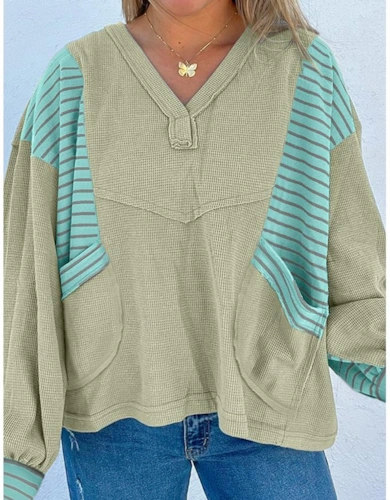 Light Pink Keyhole Notch V Neck Batwing Sleeve Blouse