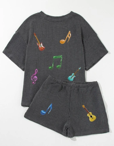 Pink Stripe Wide Short Sleeve Tee And Short Set