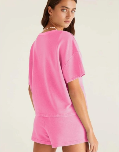 Strawberry Pink Elastic High Waisted Denim Shorts