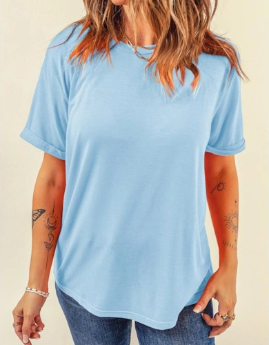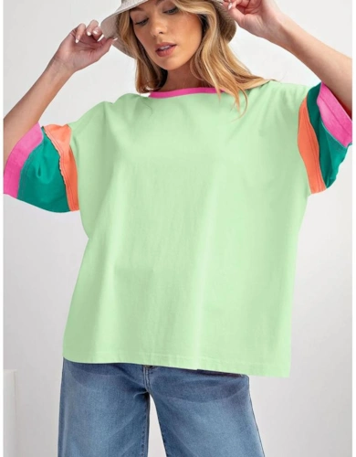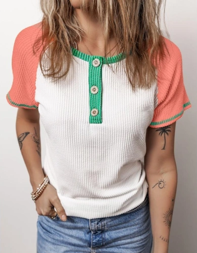 Dark Blue Corded Knit Color Block Pocketed Crew Neck T Shirt