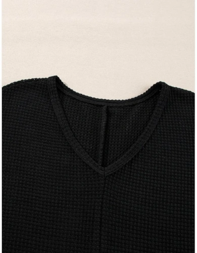Parchment Twist Ribbed Exposed Seam Detail Long Sleeve Loose Top