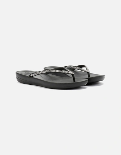 Iqushion Sparkle Rubber Women's Black Flip Flops