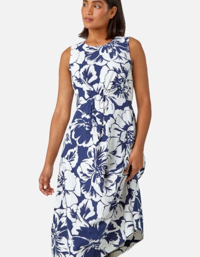 Floral Embroidered Cotton Linen Woven Midi Dress