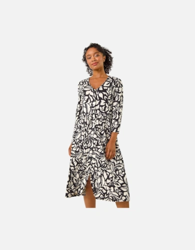 Petite Mono Floral Woven Button Up Maxi Dress