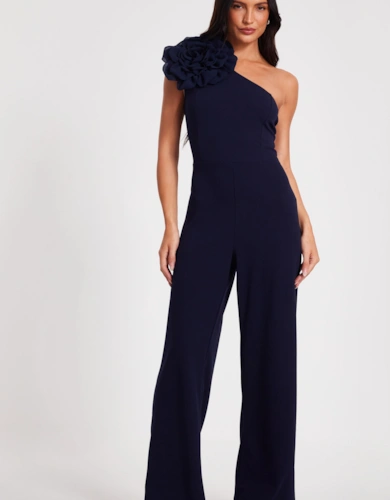 Blue Floral Ruffle Sleeeves Jumpsuit