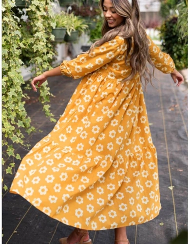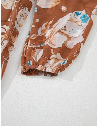 Red V Neck Floral Print Ruffle Maxi Dress