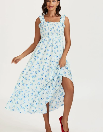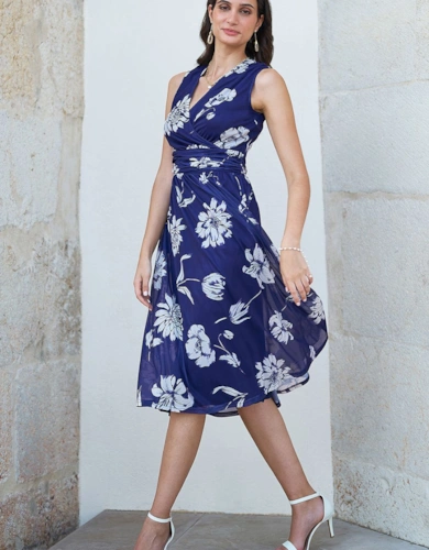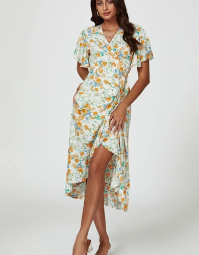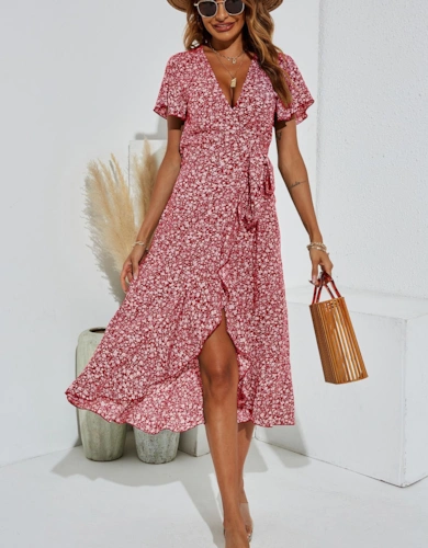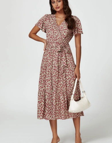 Floral Print Georgette Belted Woven Shirt Dress