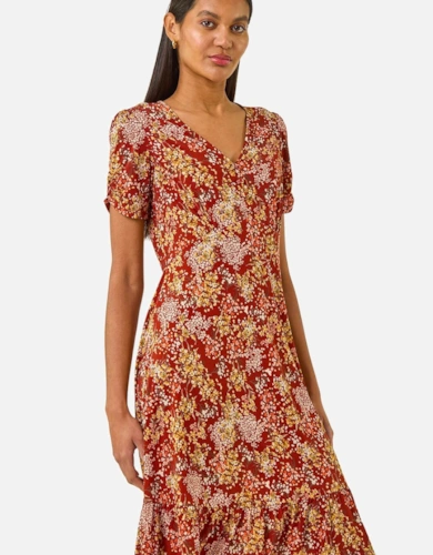 Petite Floral Print Silk Cotton Long Sleeve Woven Blouse