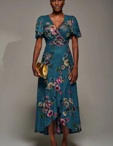 Printed Silky Chiffon Flutter Sleeve Maxi Dress
