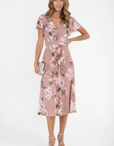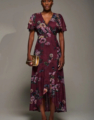 Black Rose Print Flared Sleeve Mini Dress