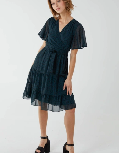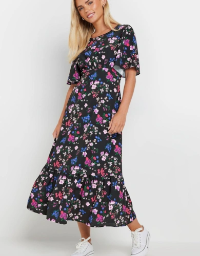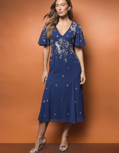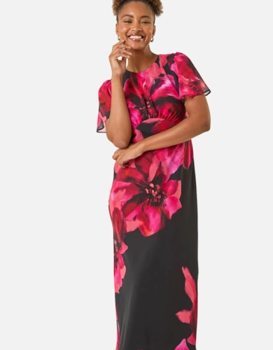 Orange Metallic Jacquard Flutter Sleeves Floral Maxi Dress
