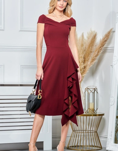 Frill Sleeve V Neck Midi Dress