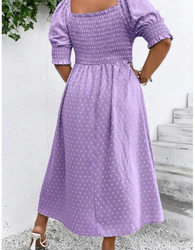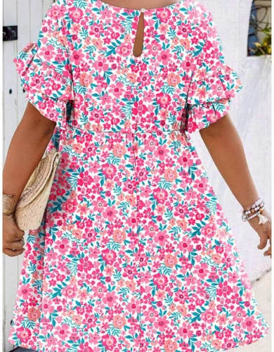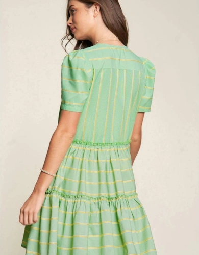 Denim Blue Chambray Frill Sleeves Flared Mini Dress