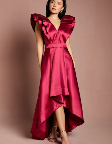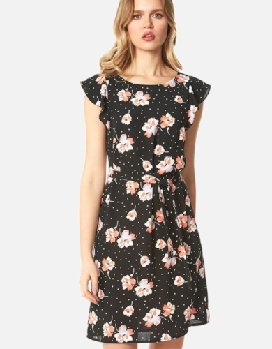 Denim Blue Chambray Frill Sleeves Flared Mini Dress