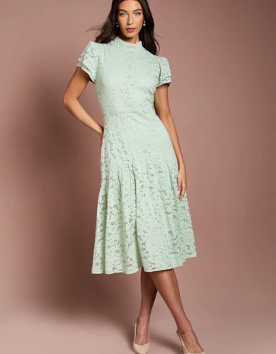 Maternity Flare Sleeve Frill Edge Midi Dress