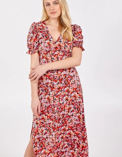 Floral Frill Sleeve Midi Wrap Dress