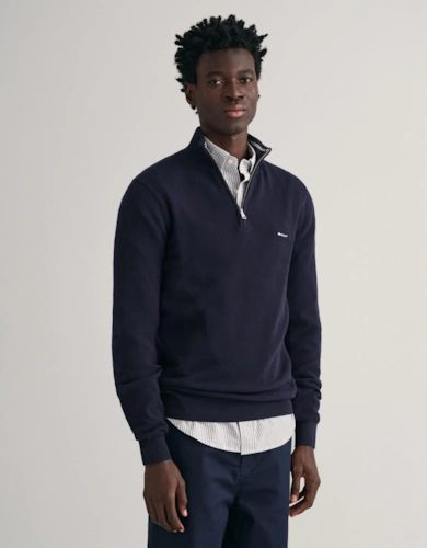 Mens Casual Cotton Half Zip Jumper - 433 Evening Blue