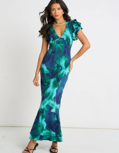 Black Multi Jacquard Angel Sleeves Maxi Dress