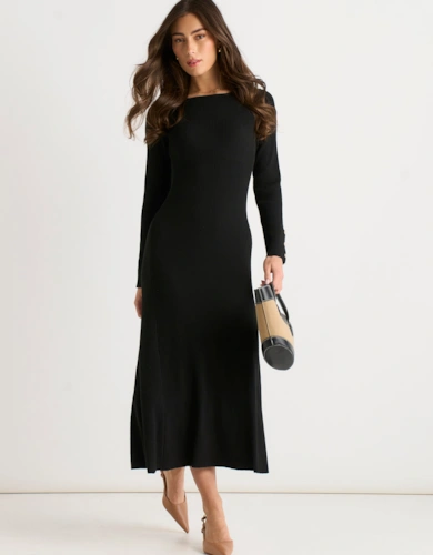 Black V Neck Foil Midi Skater Dress