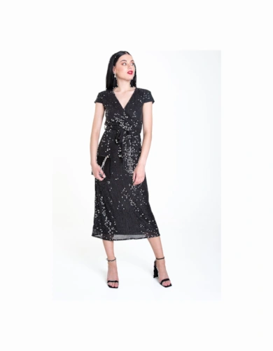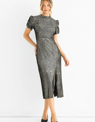 Black Multi Jacquard Angel Sleeves Maxi Dress