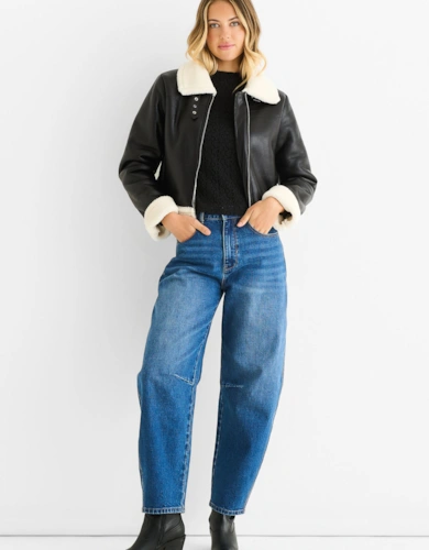 Brown Faux Leather Shearling Fur Aviator Jacket