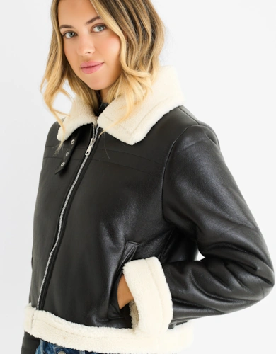 Brown Faux Leather Shearling Fur Aviator Jacket