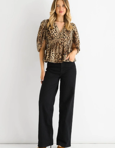 Black Animal Pattern Burnout Long Sleeve Bodysuit