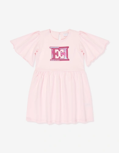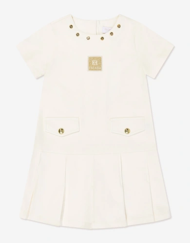 Girls Embroidered Badge Dress In Ivory