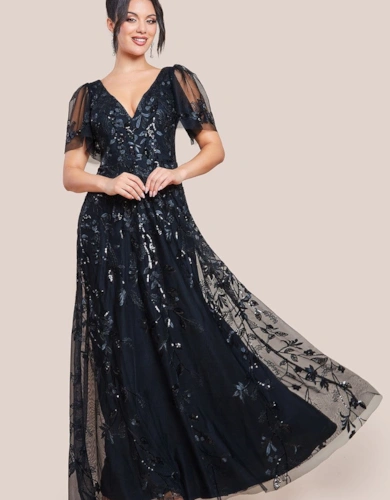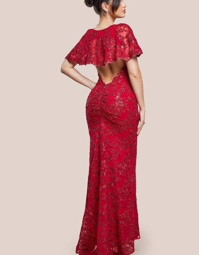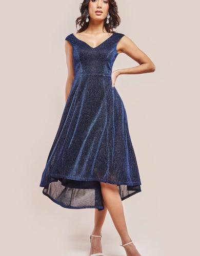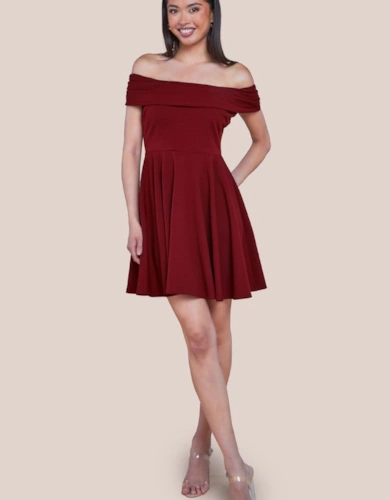 Cap Sleeve Plunging V Neckline Skater Mini Dress