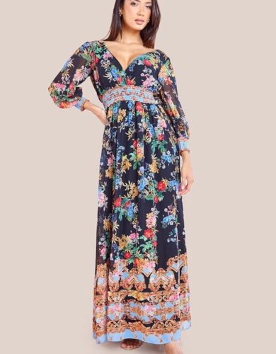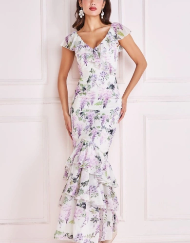 Floral Printed Flutter Sleeve Chiffon Midi Dress