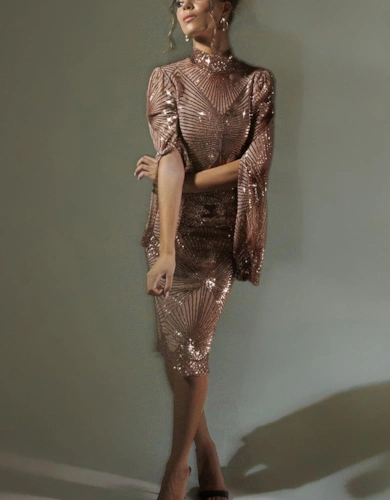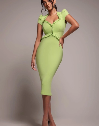 Scuba Crepe Pleated Drop Shoulder Midi Dress
