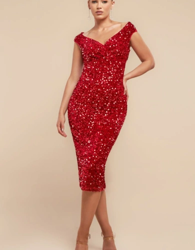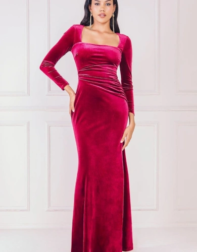Shimmer Velvet Bardot Maxi Dress