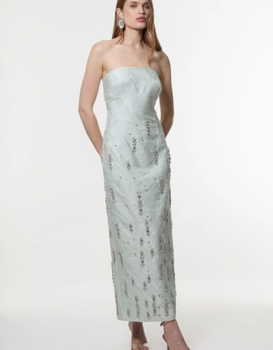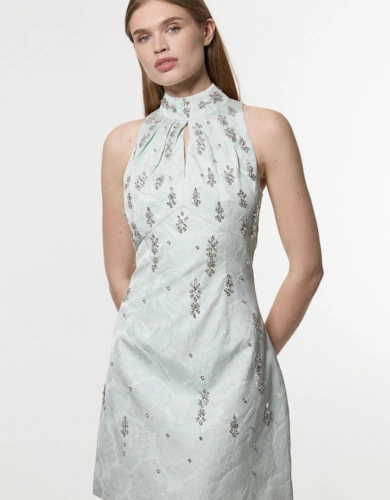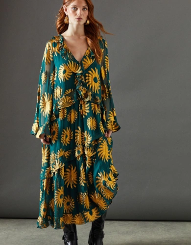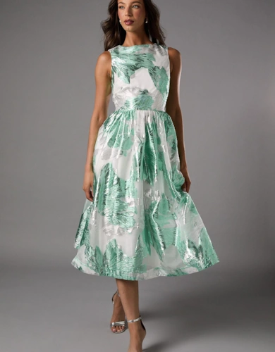 Green Viscose Animal Jacquard Occasion Midi Dress